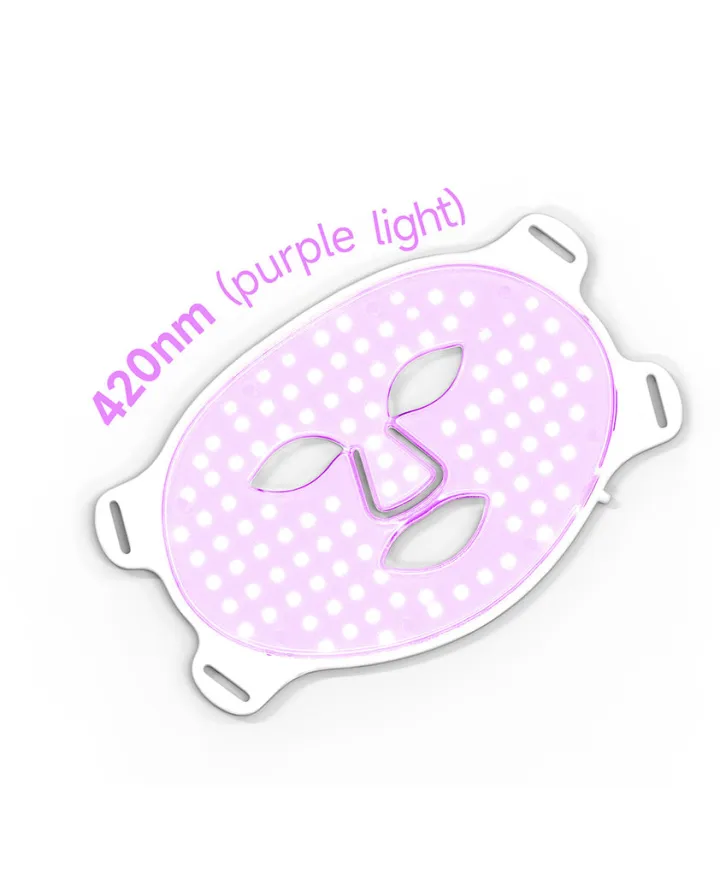 🟣 Paars licht (630+460 nm): Een combinatie van twee frequenties (rood en blauw licht), vermindert acnelittekens.