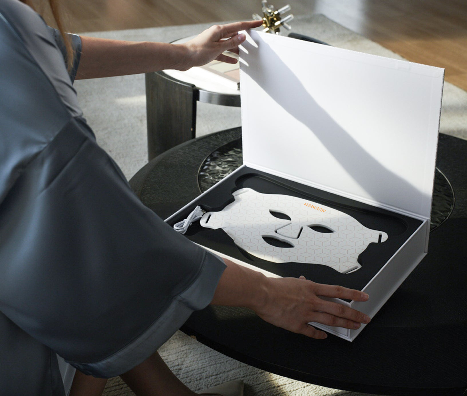 Het Veonskin™ LED-masker bevat honderden krachtige LED-lichtjes die diep in de huidlagen werken om huidproblemen bij de kern aan te pakken. De gelijkmatige lichtverspreiding zorgt voor een volledige gezichtsdekking en zichtbare, consistente resultaten – perfect voor professionele huidverzorging in je eigen huis.